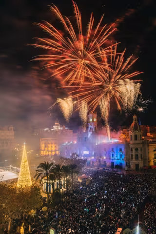 La ciudad de Valncia recupera la fiesta de Nochevieja en la plaza del Ayuntamiento para despedir el año 2022 y dar la bienvenida a 2023 --tras dos años suspendida por la pandemia--, que contará con música de varios DJ, fuegos artificiales y las tradicionales campanadas y que se extenderá durante todo el día 31 para los más pequeños con cuentacuentos, magia, animación y títeres como antesala de las campanadas infantiles.