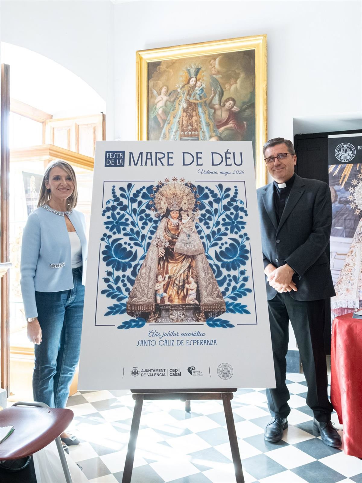 El Museo Mariano de València ha acogido este jueves la presentación del cartel oficial y el programa de actos de la festividad de la Mare de Déu 2026, en el que el tapiz floral evocará las pinturas de la bóveda de la Basílica, obra de Antonio Palomino.