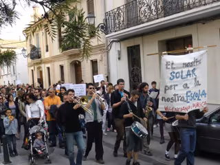 La protesta, convocada por la Plataforma per l'Ensenyament Públic de Campanar, ha salido a las 18.30 horas en la plaza de la Iglesia y ha discurrido por la calle Mestre Bagant, ha atravesado la avenida Maestro Rodrigo para continuar por la calle Poeta Rafael Alberti, que desemboca en el solar recalificado. En la pancarta que encabezaba el pasacalle se podía leer 'El nostre solar per a la nostra escola valenciana i publica'.