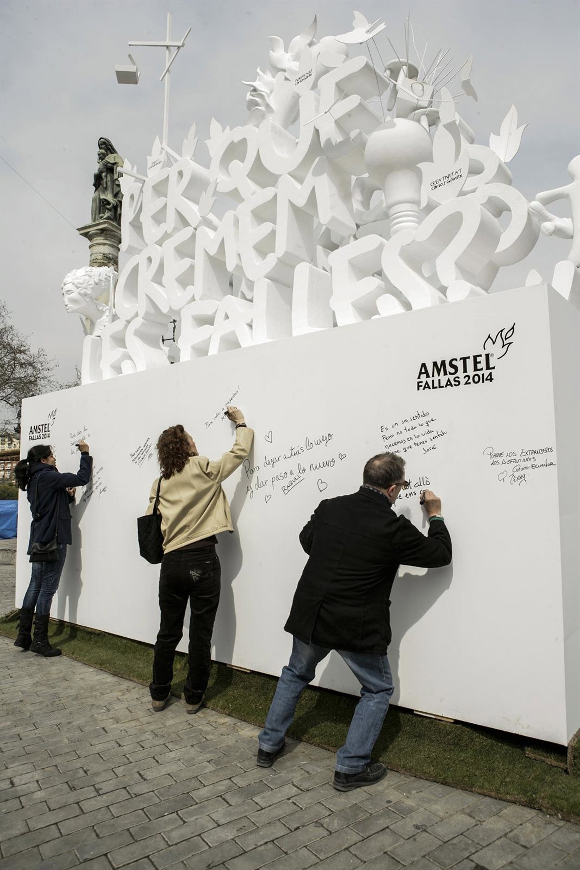 La segunda fase de interacción arranca este viernes y se extenderá hasta la Nit de la Cremà, ya que el monumento va a quedarse instalado en los exteriores de Na Jordana y el público podrá escribir directamente sobre él, dejando manuscrita su respuesta a por qué quemamos las Fallas.