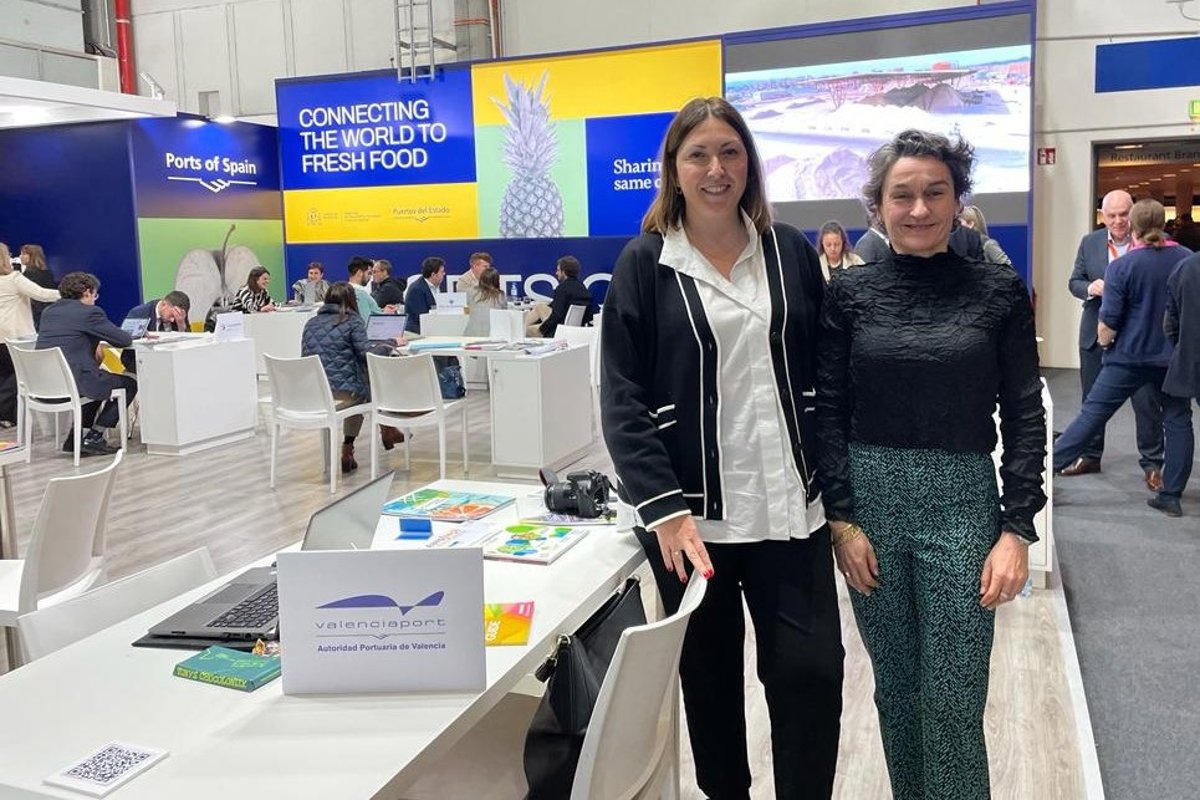 El equipo de Valenciaport, representado por la responsable de Comercial y Desarrollo de Negocio de la APV, Mar Chao, y la jefa de Comercial y Clientes de la APV, Cristina Rodríguez, está promocionando los servicios y la operatividad que ofrece Valenciaport a los exportadores e importadores para productos refrigerados y poniendo en valor la conexión del recinto valenciano con más de 1.000 puertos de todo el mundo.