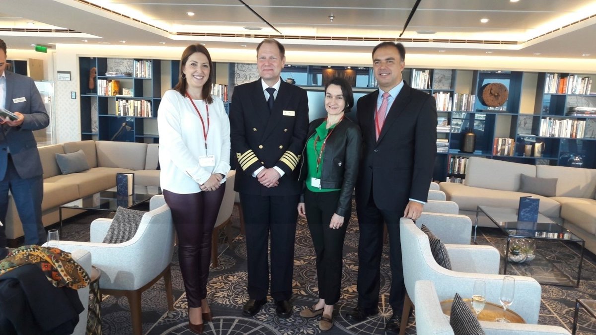 En su viaje inaugural, este crucero de la compañía Viking Cruises recorrerá 35 países y 66 puertos en un recorrido que durará 141 días. Para conmemorar esta primera escala, se le ha hecho entrega a la compañía de una metopa conmemorativa al capitán del buque, Ander Gillis, una ceremonia que ha contado con la presencia de la Directora Comercial de la Autoridad Portuaria de Valencia, Mar Chao; el Responsable de Cruceros de Turismo Valencia, Máximo Caletrio y Cristina Rodríguez, Cruise Manager de Pérez & Cía.