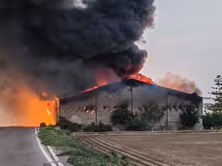 Un incendio que afecta desde primera hora de este domingo a una nave ubicada en el Camí Assagador de Vera, en el término municipal de Alboraia (Valencia). - POLICÍA LOCAL ALBORAIA