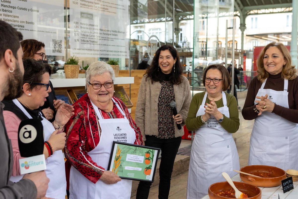 Carmen Lacomba se ha alzado con el primer premio del 'II Torneo de Titaina Valenciana' organizado por Mi Cub en el Mercado de Colón y en el que han participado seis vecinos de El Cabanyal. De esta forma, Lacomba recibe un título que le acredita como la mejor cocinera de titaina.