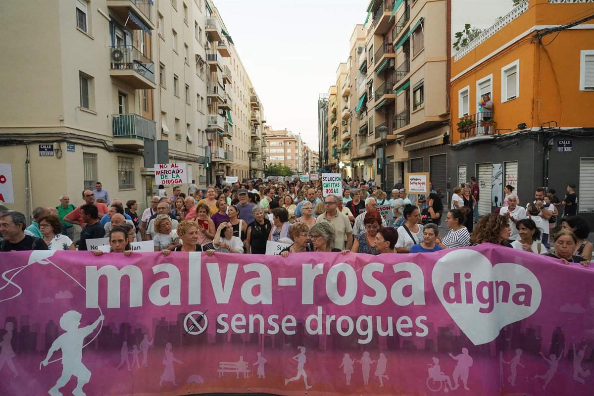 Colectivos vecinales y sociales del barrio valenciano de la Malva-rosa han salido este jueves a la calle para clamar contra el mercado de la droga en la zona conocida como las Casitas Rosas, alzar la voz contra la "degradación" del barrio y las situaciones de "inseguridad" que todo ello provoca y para reclamar soluciones "gobierne quien gobierne", así como una actuación integral con la participación de las instituciones implicadas --local, autonómica y nacional--. "No podemos esperar más", han recalcado.