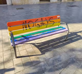 En concreto, los vecinos difunden fotografías de pintadas en el banco arcoíris de la plaza de Patraix con las palabras 'No gays', así como otras en un mural que existía en la calle Juan Bautista Corachán o del pasado verano en el acceso a uno de los locales del Moviment Escolta Valncia.