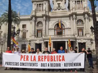 Cerca de una treintena de vecinos de Valencia se ha concentrado este jueves en la plaza del Ayuntamiento para exigir un referéndum "real" sobre la Monarquía "y no una tomadura de pelo". La idea es reivindicar "el derecho a opinar".
