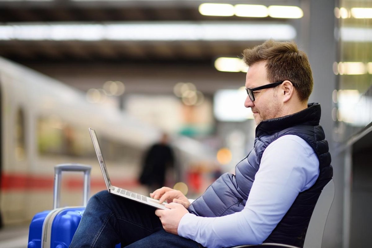 Archivo - Un usuario utiliza un ordenador con 5G en una estación de tren - TELEFÓNICA - Archivo