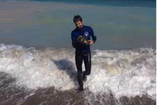 La operación de rescate, en la que participó también la Guardia Civil, requirió que el veterinario de la Fundación Oceanogràfic, Vicente Marco, se adentrara en el agua.