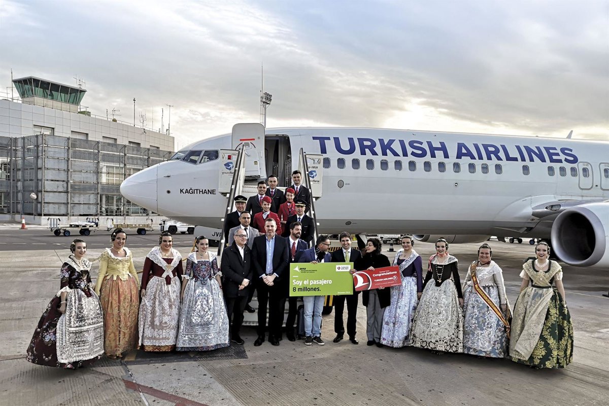 Un viajero de un Boeing 737-900 de la compañía Turkish Airlines procedente de Estambul se ha convertido este jueves en el pasajero ocho millones del aeropuerto valenciano de Manises, según ha informado AENA en un comunicado.