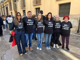 Precisamente, los representantes de los colectivos de afectados han acudido este lunes al Ayuntamiento de València para asistir a la tradicional mascletà, pero no como un acto festivo, sino "reivindicativo", han precisado. De hecho, han acudido luciendo camisetas con el lema 'No al aforament de Mazón' (No al aforamiento de Mazón).