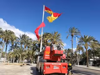 Una bandera de España de grandes dimensiones situada en la avenida de la Estación de Elche ha quedado desgarrada a causa del viento y ha tenido que ser retirada, según ha informado a Europa Press el Consorcio Provincial de Bomberos de Alicante.