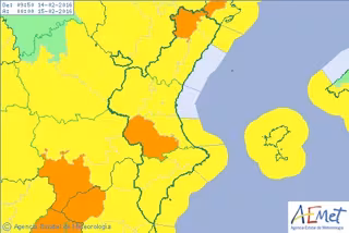 La cota de nieve descenderá a última hora a 800 metros y las temperaturas irán en descenso --localmente de manera notable--, que será más acusado hacia el final del día. Así, las míninas podrían situarse en los 12 grados en Alicante y Valencia, los 11 en Castellón, 7 en Alcoi, 3 en Requena y 2 en Morella.