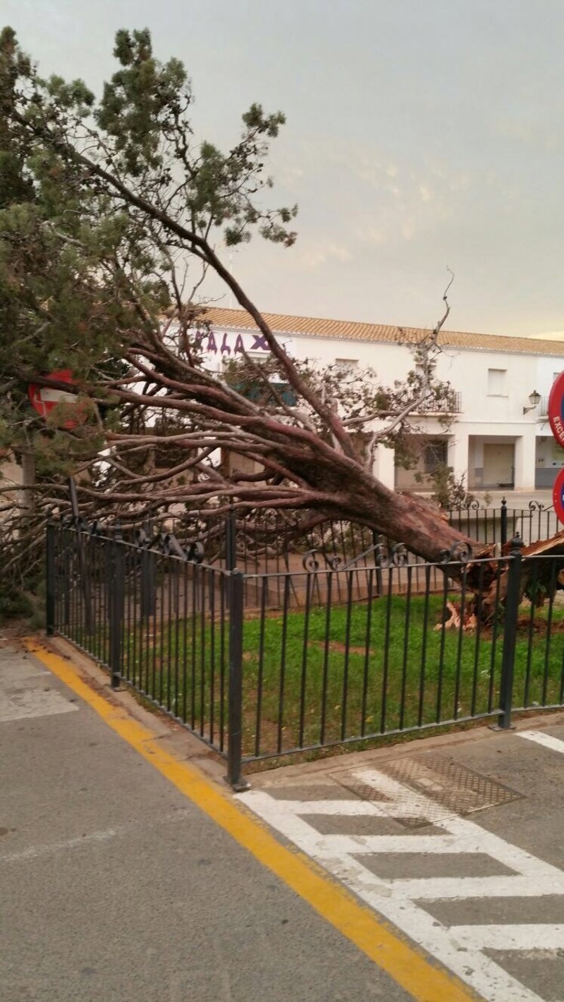 Según ha explicado a Europa Press el alcalde de la localidad, Enrique Santafosta, la caída del emblema se ha registrado sobre las 7.50 horas como consecuencia de las fuertes ráfagas de viento. El árbol no se ha podido salvar y, "por desgracia", ha tenido que ser talado. No ha sido el único caído en la madrugada ya que también ha habido otros como en la Casa de la Juventud.