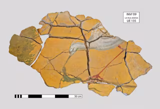 Fragmentos de panel de pintura mural durante el proceso de restauración en la excavación arqueológica del yacimiento de la villa romana en la zona de Barberes Sur de La Vila Joiosa (Alicante) - AYUNTAMIENTO LA VILA JOIOSA