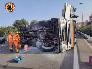 El vuelco de un camión en la CV-35 entre los términos municipales de Burjassot y Paterna (Valencia) ha provocado alrededor de un kilómetro de retención en la citada vía y casi dos kilómetros en la CV-31.