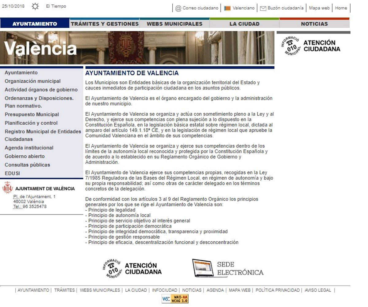 El 63% de los municipios valencianos de más de 10.000 habitantes están por debajo del 50% de cumplimiento de los indicadores que evalúan la transparencia de sus sitios web. Únicamente la ciudad de València alcanza el "nivel de excelencia" en transparencia con un 84% de cumplimiento de los indicadores.