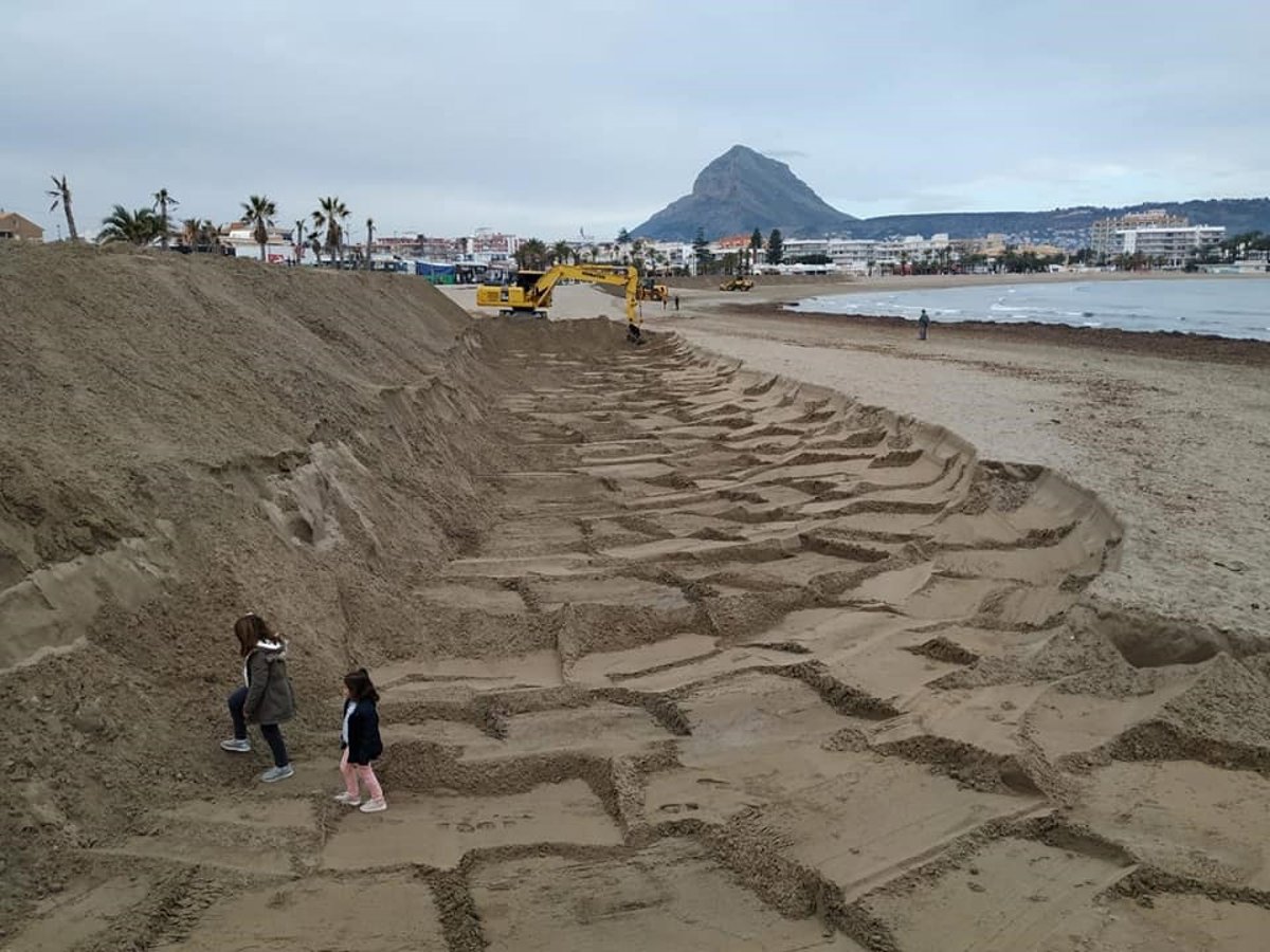 El dique de protección construido en la playa del Arenal de Xbia (Alicante) ante la la llegada del temporal 'Gloria' - AJUNTAMENT DE XBIA