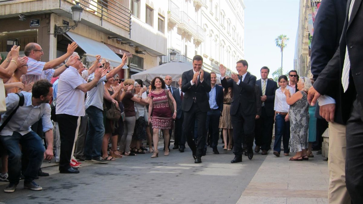 El presidente de la Generalitat, Ximo Puig, ha llegado pasadas las 10.45 horas a la calle Navellos de Valencia, a las puertas de las Corts, acompañado por el secretario general del PSOE, Pedro Sánchez, y el expresidente José Luis Rodríguez Zapatero, ante los aplausos de numerosos ciudadanos, que han coreado gritos de 'president, president'.