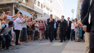 Ante una nube de fotógrafos, la comitiva, entre una gran expectación, se ha hecho paso para acceder a las Corts y, una vez dentro, se han dirigido al Salón de los Espejos.