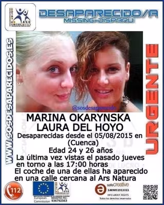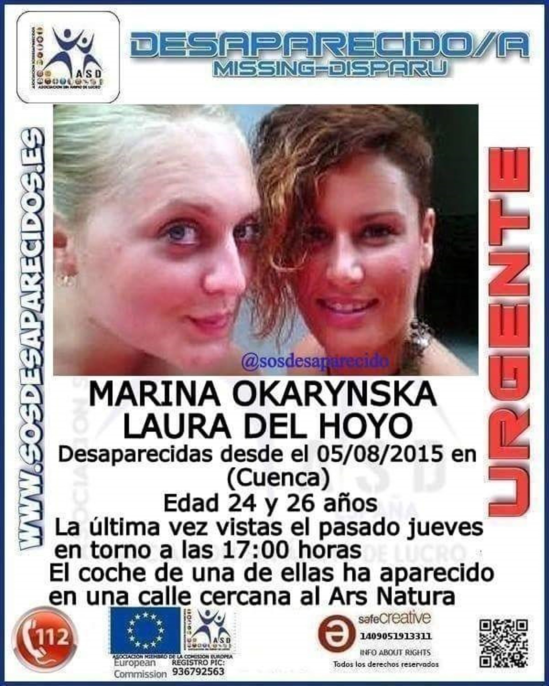 La Policía Nacional encontró este pasado miércoles los cuerpos sin vida de las dos jóvenes desaparecidas el 5 de agosto, Laura del Hoyo Chamón y Marina Okarynska, de 26 y 24 años, en la orilla del río Huécar en las proximidades de la localidad conquense de Palomera.