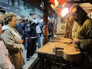 En la primera parte del recorrido la alcaldesa y sus acompañantes, entre los que figuraba la mayor parte de los miembros del Equipo de Gobierno y también representantes de los grupos de oposición municipal, se ha detenido en distintos talleres artesanales, de forja, de cerámica o de madera, antes de llegar hasta los pabellones del 'Circuito de la Comunidad Valenciana Ricardo Tormo' y del Valencia CF, donde han saludado a los futbolistas Guaita y Alcacer y también al directivo y exjugador Fernando Giner.