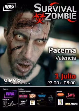 La localidad valenciana de Paterna acogerá el sábado 1 de julio la Survival Zombie, un juego multitudinario de supervivencia en el que los participantes deberán superar varias pruebas para evitar ser atrapados por las decenas de 'zombies' que llenarán las calles del municipio, ambientadas para recrear un mundo post apocalíptico.