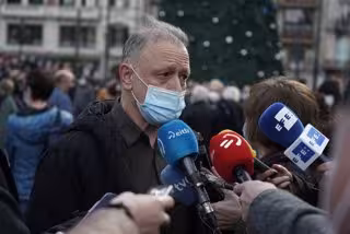 Archivo - El diputado de Unidas Podemos, Roberto Uriarte ofrece declaraciones a los medios de comunicación durante la concentración bajo el lema 'Demokrazia' en la Plaza de Arriaga, Bilbao, País Vasco (España), a 19 de diciembre de 2020. La convocatoria - H.Bilbao - Europa Press - Archivo
