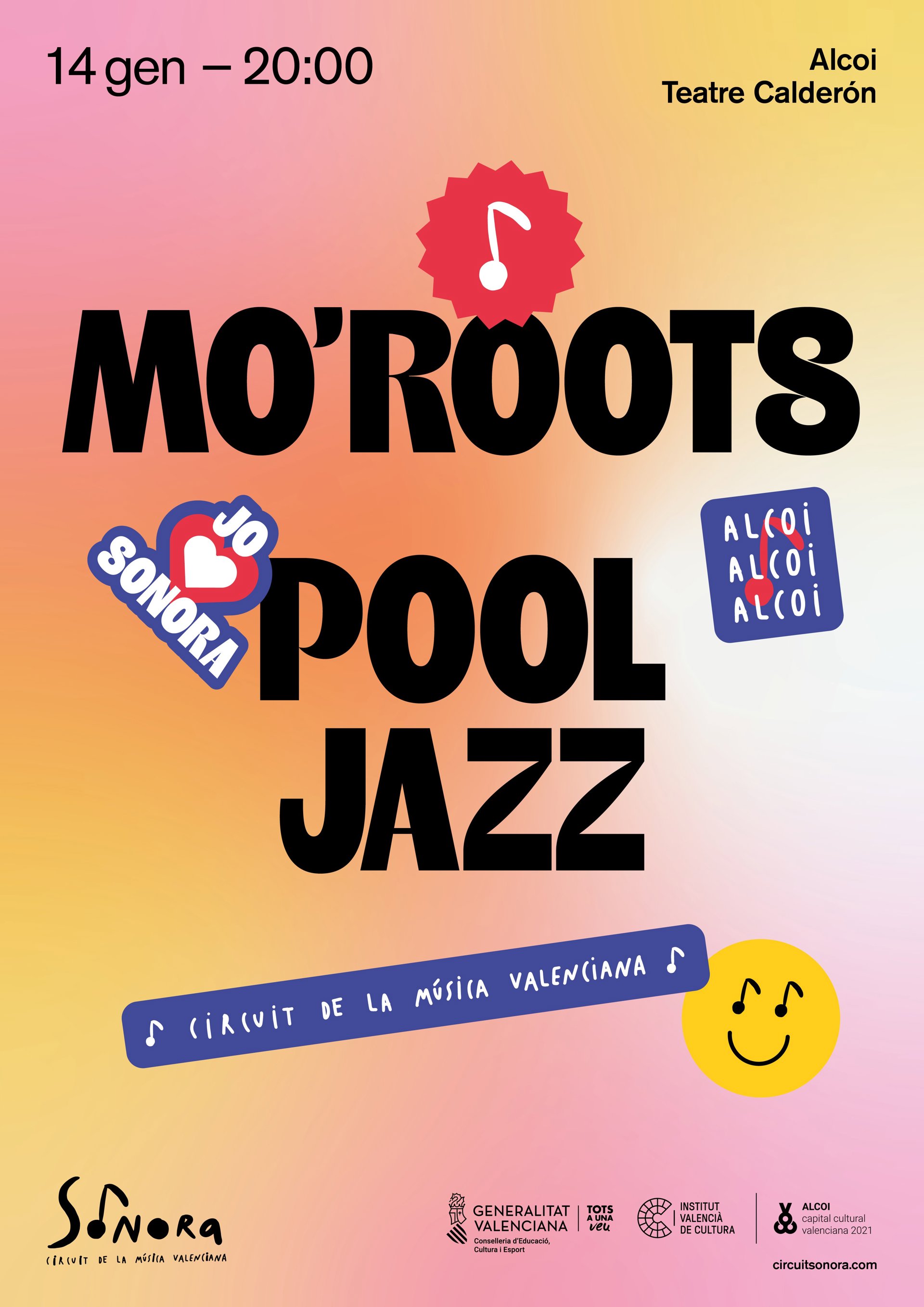 El circuito de la música valenciana, 'Sonora', organizado por Cultura de la Generalitat a través del Institut Valenci de Cultura (IVC), continúa su estancia en Alcoi (Alicante) con una propuesta doble de música de fusión, puesto que este viernes 14 de enero, a las 20.00 horas, actuarán en el Teatre Calderón los grupos Mo'Roots y Pool Jazz.