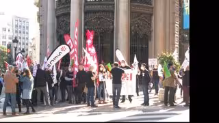 Protesta de trabajadores de CaixaBank ante la sede en Valncia - EPTV