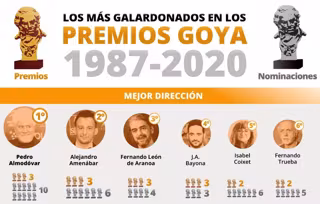 Le sigue Reyes Abades, profesional de los efectos especiales, que se ha llevado hasta nueve premios y más de 30 candidaturas. Además, destaca Alejandro Amenábar, que también ha sido reconocido como compositor de bandas sonoras, Javier Bardem que suma seis (cinco como actor y uno como productor del documental 'Hijos de las nubes, la última colonia'), o Isabel Coixet también con seis.