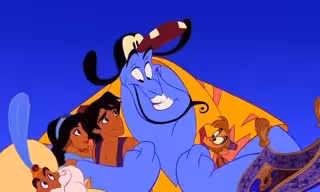 "Tras ello, pregunté a varias personas sobre el tema y el porqué se puso de moda, a lo que me dijeron, 'Oh, nos encantó cuándo el Genio se convierte en Julia Roberts de 'Pretty Woman'. En el filme está haciendo una imitación de Arsenio Hall", señaló el director. "No sabían quien era Arsenio Hall, pero si lo de Julia Roberts", recordó el director. A lo que Musker añadió que "no pareció molestarles, que el Genio tuviera bigote al transformarse en Julia Roberts".