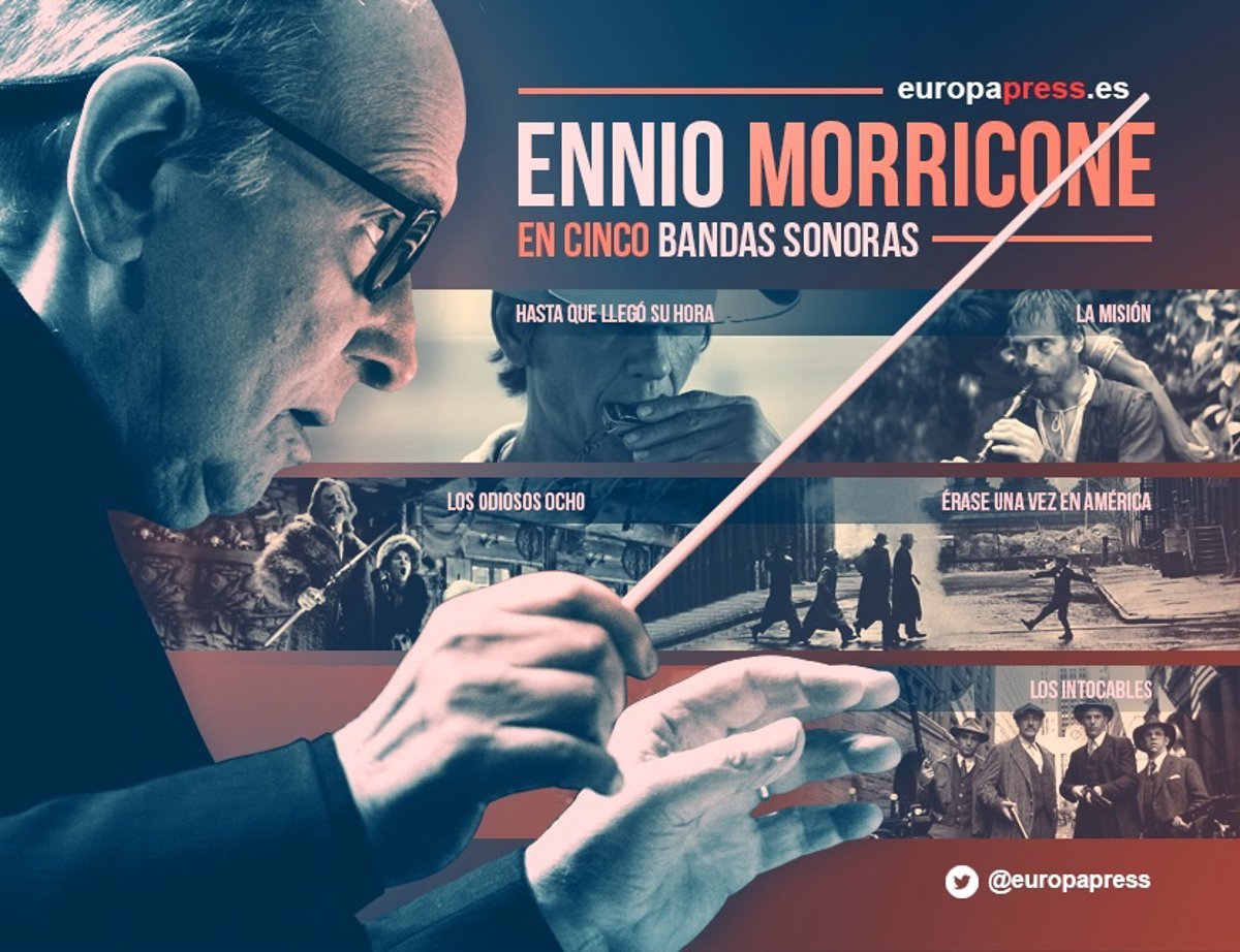 La dilatada carrera del compositor italiano recorre más de 500 adaptaciones musicales para cine y televisión siendo uno de los únicos compositores de cine que ha conseguido dos premios de la Academia de Cine por sus logros. Entre sus trabajos, destacan algunas para 'Hasta que llegó su hora', 'Érase una vez en América, 'Por un puñado de dólares', 'Los intocables', 'La misión' y 'Los Odiosos Ocho'.