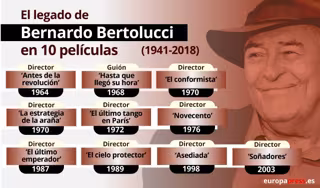 Una trayectoria marcada por la polémica y en la que destacan títulos que pasarán a la historia del cine como 'Novecento', 'El conformista', 'El último tango en París' o su obra más popular y premiada, 'El último emperador'. Repasamos diez de los títulos que marcaron su carrera como director y también como guionista