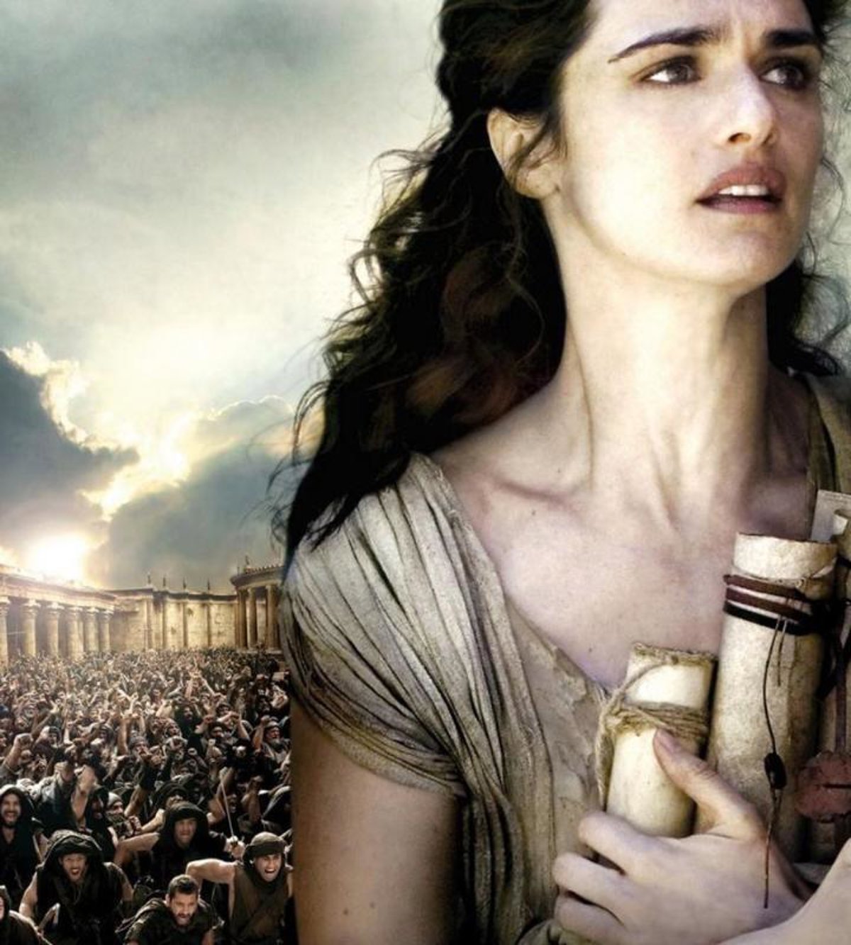 Allí hay una mujer, Hipática (a la que da vida la oscarizada Rachel Weisz) que mira al cielo para encontar respuestas. Filósofa, astrónoma y matemática, Hipática se convirtió en la mente más destacada de su tiempo, un tiempo que vivió la destrucción de la legendaria Biblioteca de Alejandría por los radicales religiosos.
