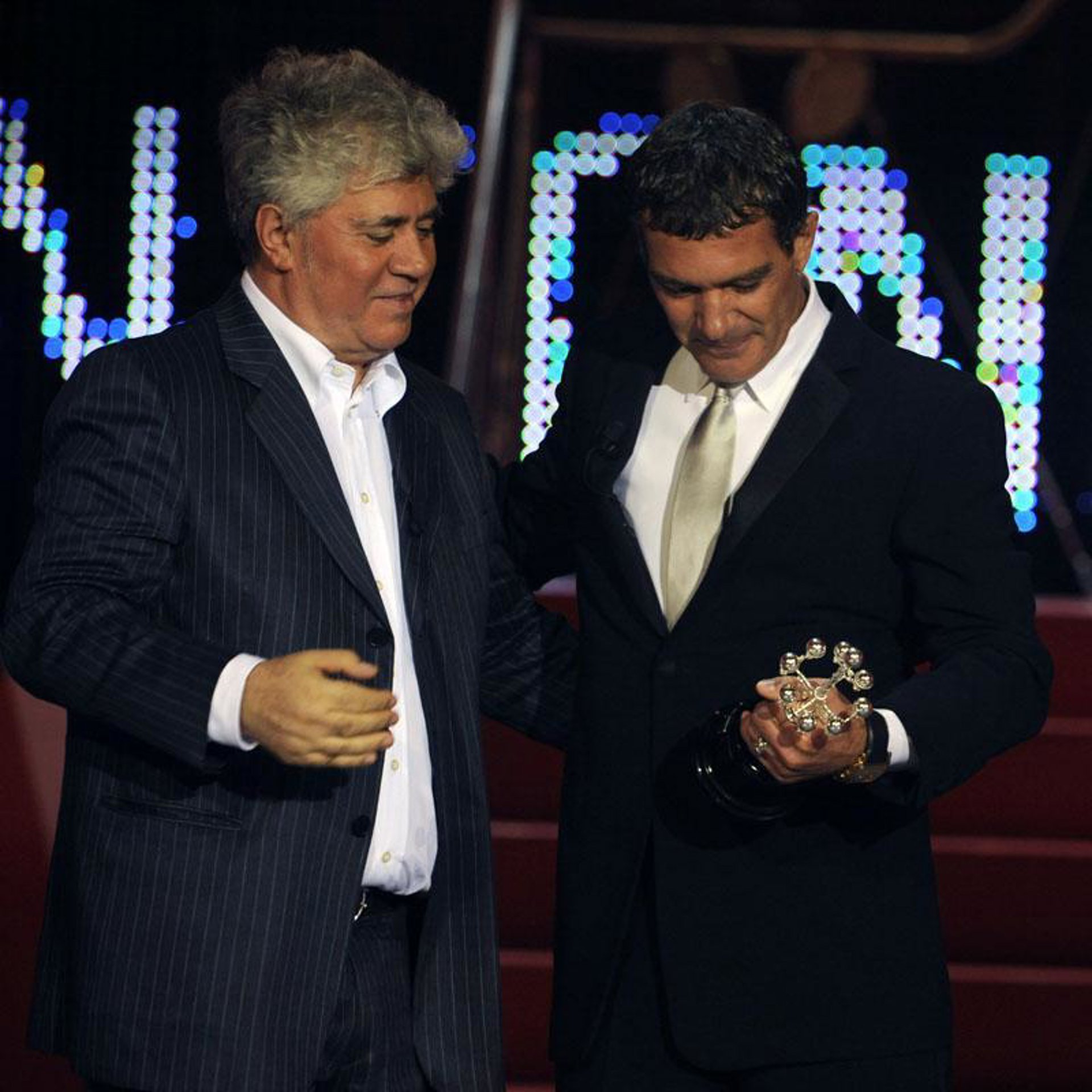 Entre ellos, el director de cine Pedro Almodóvar, quién le entregó el galardón, le describió como un "animal cinematográfico" desde su primera película, Laberinto de Pasiones. Asimismo, el director manchego destacó en su discurso las cualidades del actor malagueño como su simpatía, curiosidad, interés y deseo.