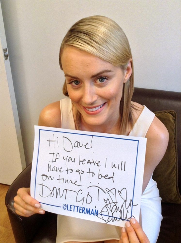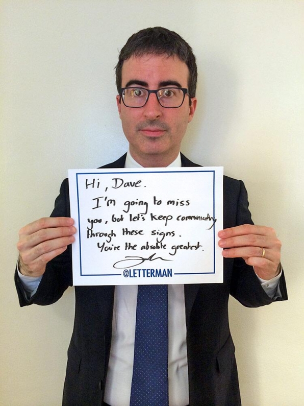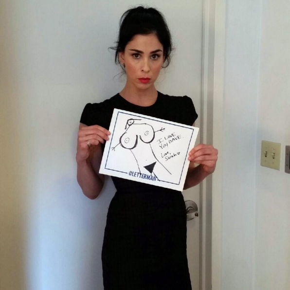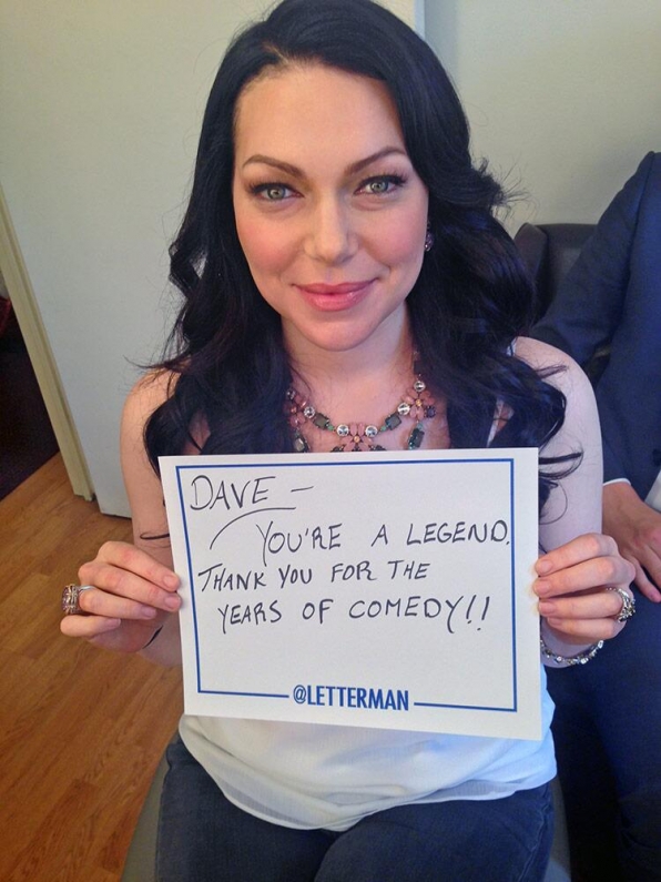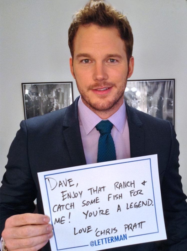 Murral no fue el único que quiso despedirse del famoso presentador, por lo que numerosas caras conocidas escribieron mensajes y dedicatorias a Letterman, durante su paso por el programa, a modo de despedida.