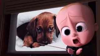 "Los bebés ya no recibimos tanto amor, os mostraré a nuestro mortal enemigo: Los perritos. ¡Esto es la guerra, los perritos ganan y los bebés perdemos!", proclama antes de ser sorprendido por los padres y verse obligado a hacer monerías.