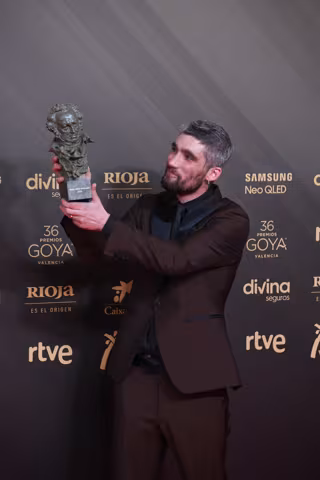 El acor Chechu Salgado posa con su Goya en la 36ª gala de los Premios Goya, en el Palau de les Arts de Valencia, a 12 de febrero de 2022, en Valencia - Jorge Gil - Europa Press
