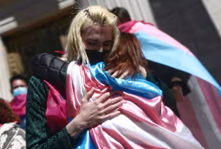 Archivo - Miembros de colectivos trans se abrazan emocionados tras registrar una ley en el Congreso de los Diputados, en Madrid, (España), a 17 de marzo de 2021. La convocatoria se produce tras presentar en el Congreso una Ley para la Igualdad Plena de la - Eduardo Parra - Europa Press - Archivo