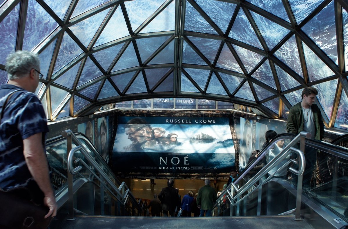 La popular cúpula de cristal de Sol ha sido el enclave escogid para recrear el famoso arca y el diluvio, elementos destacados en la película. Una tremenda transformación Paramount Pictures España con el objetivo de crear un espectacular efecto de inundación bajo la cúpula que no dejará indiferente a los viandantes, que se sentirán casi como los propios protagonistas de la historia.