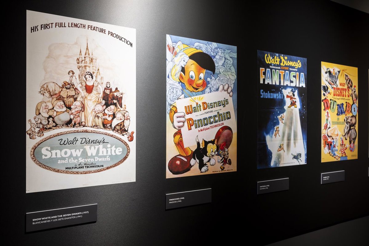 A través de los carteles de sus películas, ilustraciones, piezas de arte y vídeos, los asistentes podrán repasar la historia de Disney desde sus inicios, con sus personajes clásicos como Mickey, Pluto o Donald o los primeros ilmes de la compañía como 'Blancanieves y los siete enanitos', 'Pinocho', 'Dumbo' o 'Bambi', hasta sus éxitos más recientes de la mano de nuevos iconos de la animación como 'Frozen', 'Zootrópolis', 'Encanto' o 'Moana'.