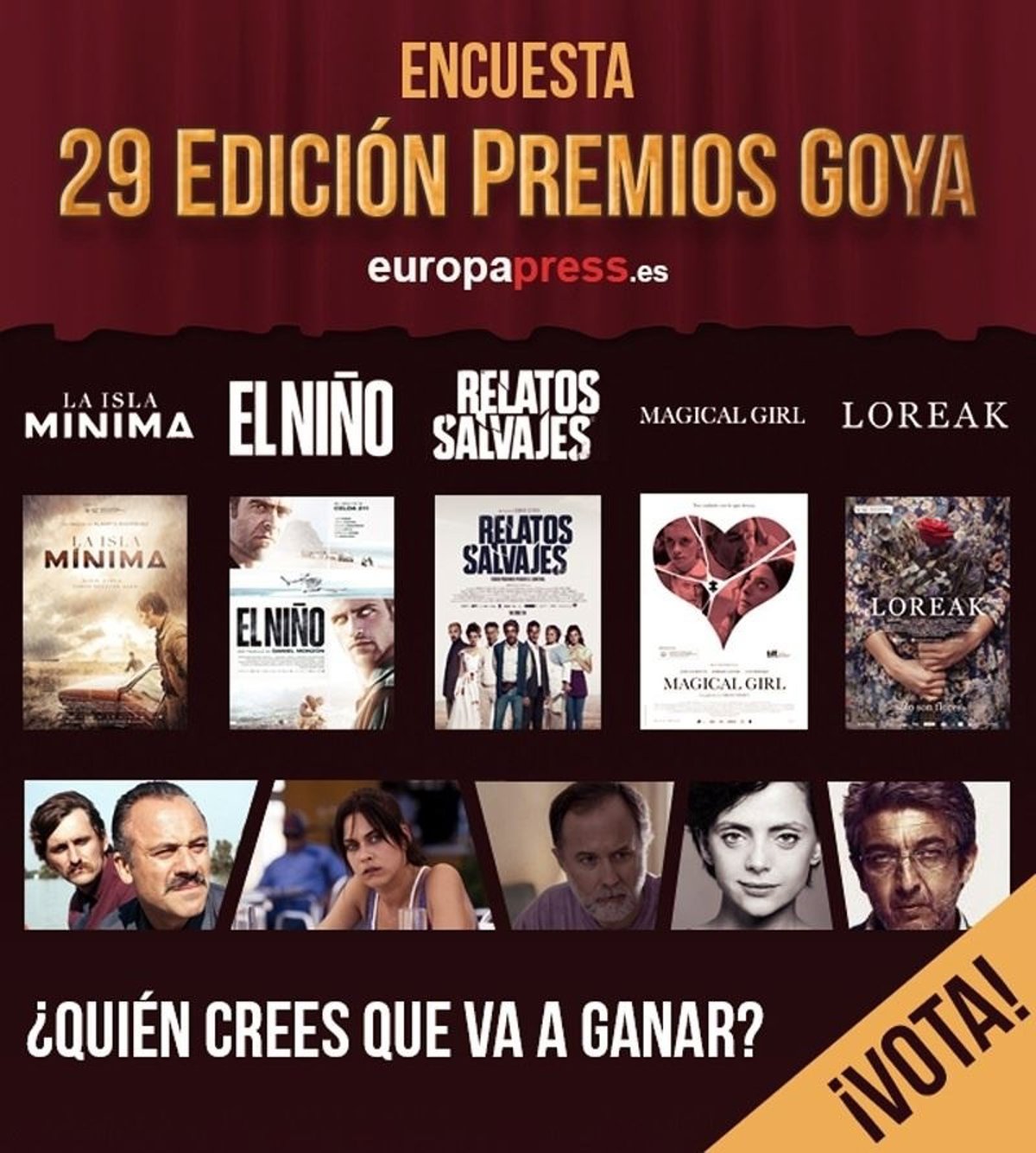En esta línea, el 62 por ciento opinó que Javier Gutiérrez se alzaría con la distinción como Mejor Actor Protagonista (por La isla mínima de nuevo). Más reñidos estuvieron los pronósticos en la Mejor Actriz Protagonista, aunque el 46 por ciento de los lectores de EuropaPress.es 'supieron' que iba a ser Bárbara Lennie (por Magical Girl).
