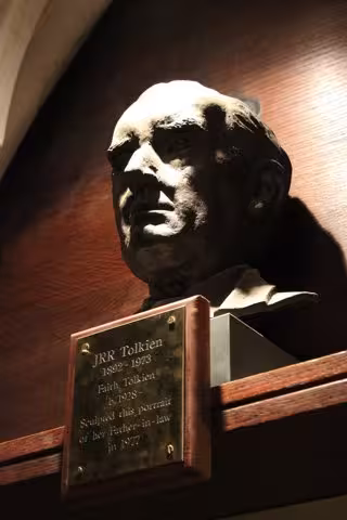 Nacido lo que hoy es Sudáfrica en 1892 y criado en Inglaterra, su formación le permitió a Tolkien servir como especialista en signos y oficial de comunicaciones en la Gran Guerra, donde muchos de sus amigos más cercanos cayeron en combate. Una experiencia que le marcó de por vida, tanto a él como a su obra. Tras la Guerra, comenzó a trabajar en tareas docentes y llegó incluso a tener una cátedra en la Universidad de Oxford.