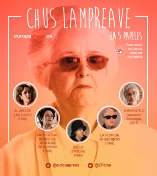Todo cambió cuando el joven cineasta manchego la hizo 'chica Almodóvar' vitalicia a partir de su participación en Pepi, Luci, Bom y otras chicas del montón en 1980. Alcanzó la fama y popularidad, pero siempre desde ese papel secundario, una suerte que -como otros rostros legendarios de nuestro cine- convirtió en un arte. Repasamos a continuación cinco de sus películas como adiós y homenaje a la figura de la gran Chus Lampreave.