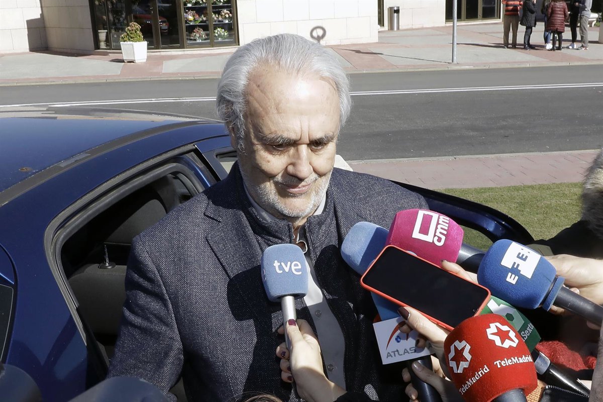 El director Manuel Gutiérrez Aragón asiste a la capilla ardiente de José Luis Cuerda en el Tanatorio La Paz en Tres Cantos, a 5 de febrero de 2020. - Josefina Blanco - Europa Press