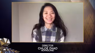 "Nos gustaría dedicar este premio a la comunidad nómada que tan generosamente nos recibió en sus vidas. Compartieron con nosotros sus sueños, sus luchas y su profundo sentido de dignidad. Gracias por mostrarnos que el envejecimiento es una parte hermosa de la vida, un viaje que todos deberíamos apreciar y celebrar", señaló Zhao, nacida en China, que se convirtió en la segunda mujer en ganar el premio a la mejor directora y la primera mujer de color. La primera mujer ganadora fue Kathryn Bigelow, quien tomó el gong en 2010 por 'En tierra hostil'.
