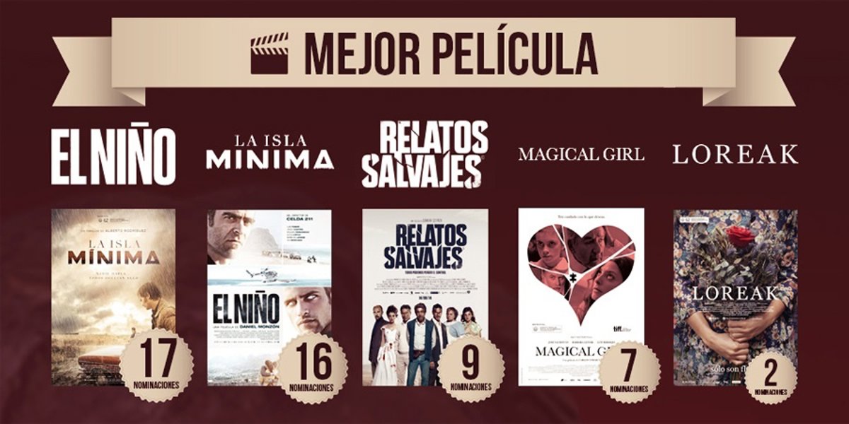 La isla mínima vs. El niño. La batalla está servida en la 29ª edición de los Premios Goya que cuenta con las películas de Alberto Rodríguez y Daniel Monzón como grandes favoritas, con 17 y 16 nominaciones respectivamente.