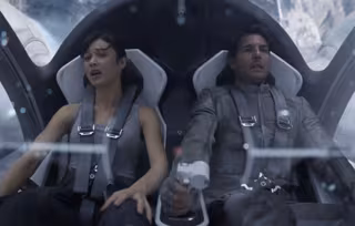 El entusiasmo de Cruise contrasta con las reservas de Olga Kurylenko, su partenaire femenina en esta trepidante aventura que "jamás" había rodado una escena tan movidita. "La nave burbuja es preciosa... cuando está posada en el suelo, pero no querrás estar en ella cuando comience a dar vueltas".
