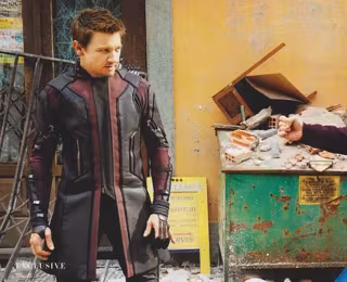 La imagen desvelada por la revista Empire, nos muestra al superhéroe al que da vida Jeremy Renner con un abrigo rojo y negro, algo similar al que luce Star-Lord en Guardianes de la galaxia.